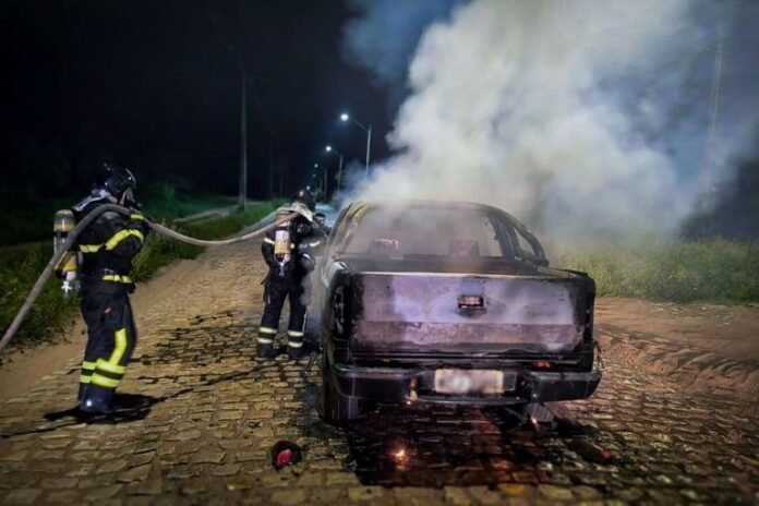 O chamado informava que um veículo utilitário, modelo S10, estaria em chamas. De imediato, a equipe se deslocou até o local, onde foi realizado o isolamento da área e montada uma linha de ataque para conter o fogo. O procedimento seguiu os protocolos operacionais da corporação, priorizando a segurança da via e o controle eficaz das chamas. O veículo estava estacionado em via pública e, no momento da ocorrência, não havia nenhum responsável presente. Felizmente, não houve feridos.